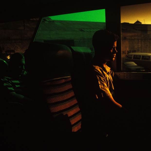 Greg Girard, Greyhound Passenger, Texas, 1978, archival pigment print. Courtesy of the Artist and Monte Clark.